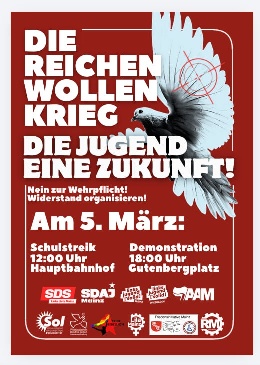 Berichte von der Demo am 5. 12. gegen Verpflichtung zum Kriegsdienst !https://www.swr.de/swraktuell/rheinland-pfalz/schulstreik-wehrpflicht-gesetz-schueler-demonstrieren-gegen-musterung-100.html